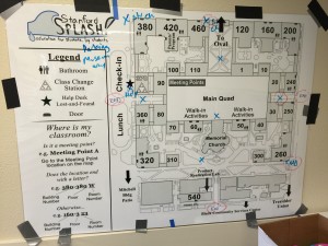 Still, I’m impressed by the scope of the program: 60 to 70 Stanford volunteers, 300 teachers, 25 administrative members and two advisors, Ankita and Rosy, from SAL and Haas. There are even a few “exchange” students from the leadership teams of other Splash programs at UNC, Pomona, Yale, Berkeley and other schools, here to learn about how Stanford Splash is run.