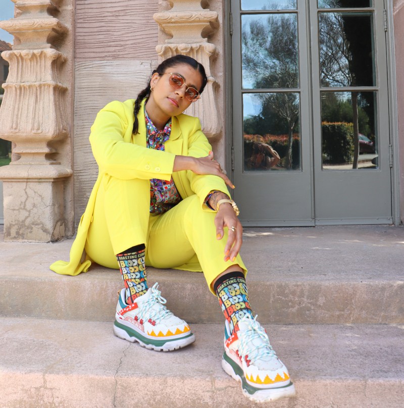 Gandhi will be releasing her new EP “Vibrations” in the upcoming fall, which will be a lot more vulnerable in the explorations of her relationship with her community and with herself. A visually attentive person, Gandhi uses the album’s aesthetics to reinforce her message: “In the past album artworks, the outfits that I wear are very buttoned up. This one we ended up just going completely skin to express that vulnerability and that openness and finding power in the openness. It’s very magical.”