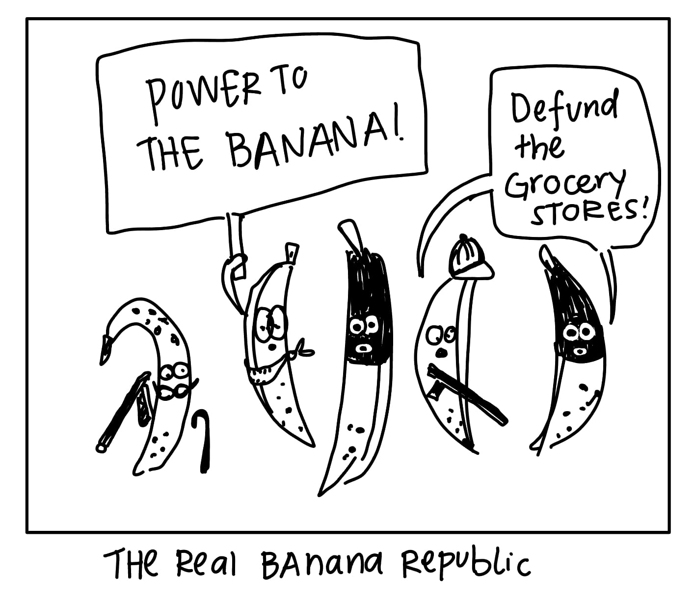 Cartoons The Real Banana Republic (Cartoon: JANINA TROPER) Humor by Janina Troper Feb. 27, 2025, 12:17 a.m. Janina Troper is a Humor writer for the Stanford Daily. Contact her at humor "at" stanforddaily.com. Print Article