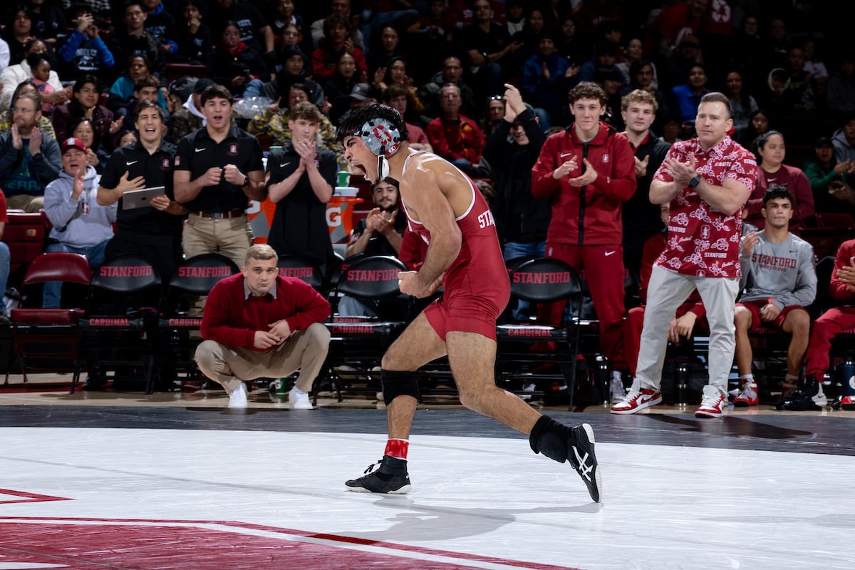 By the third period, Cardenas held an 18-5 advantage, needing just one more takedown to seal the technical fall. As the crowd erupted into chants of “one more takedown,” Cardenas delivered, finishing the bout with a decisive 21-5 win. The victory helped Stanford cut its deficit to 5-10.
