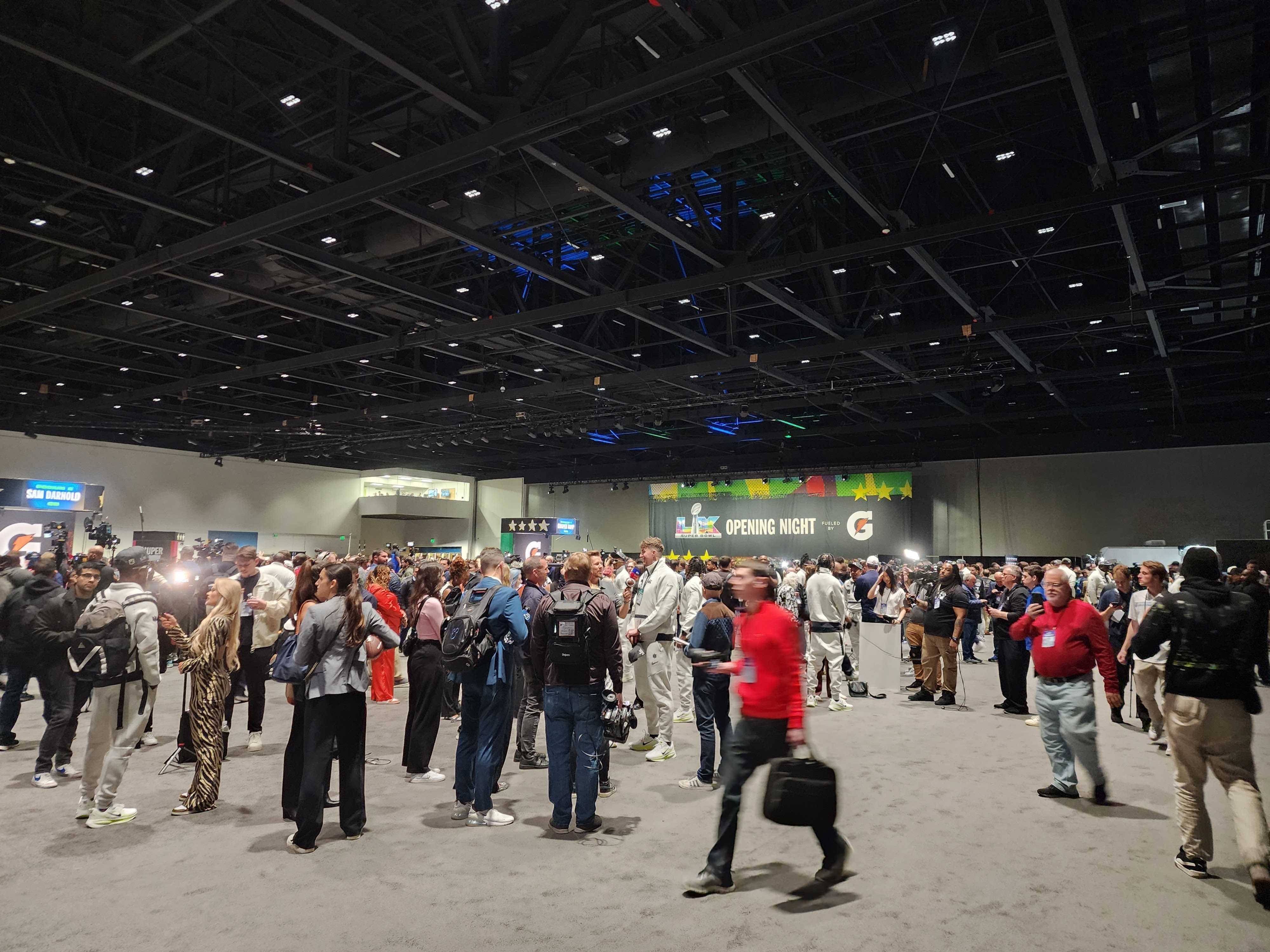 The Super Bowl is back in the Bay Area for the first time since 2016, and it is back bigger than ever. Thousands packed the San Jose Convention Center for Opening Night, with the crowd consisting largely of credentialed media. Journalists, reporters, television personalities and social media influencers roamed the venue as the players and coaches of both the New England Patriots and Seattle Seahawks were available for interviews.