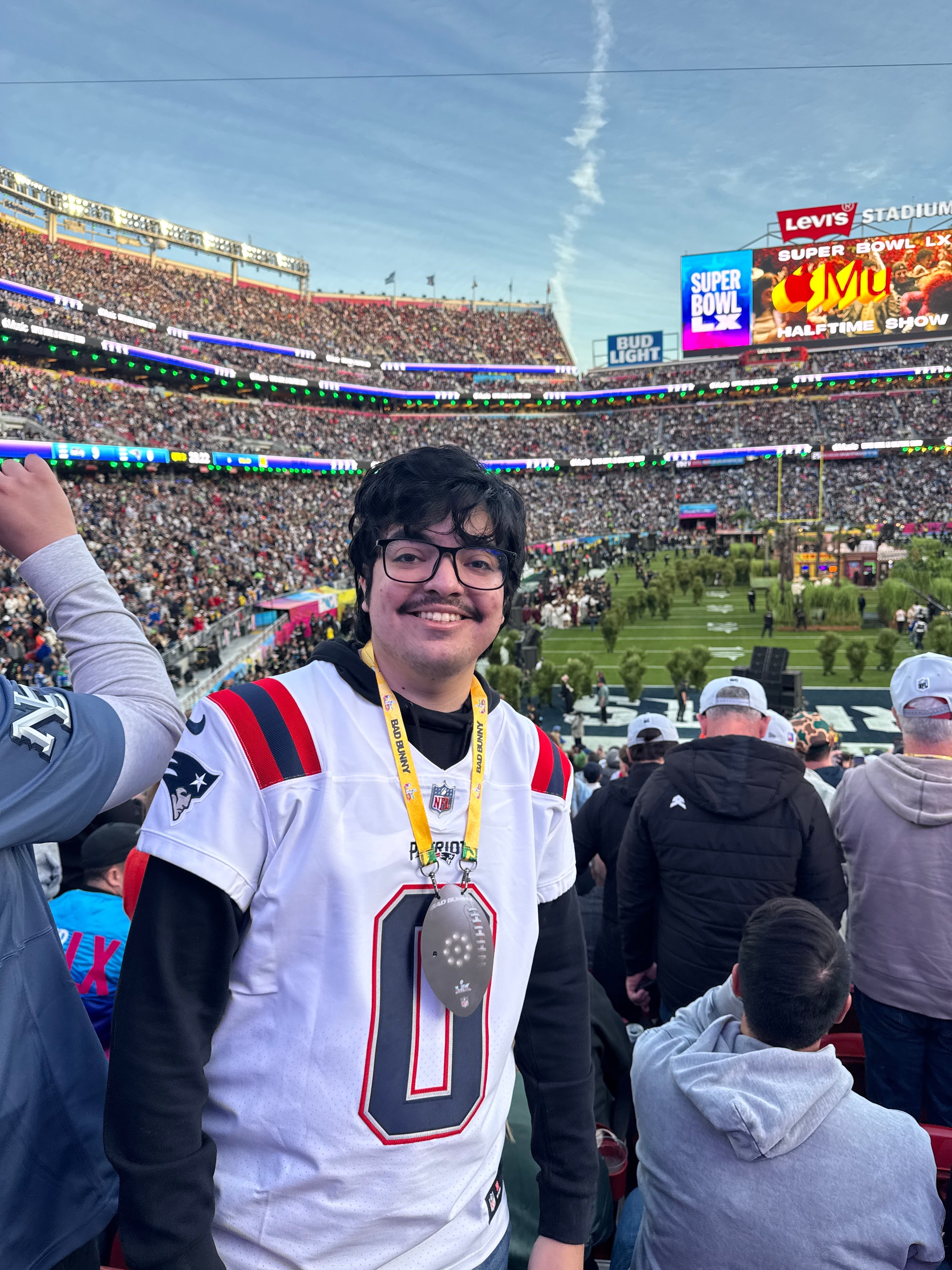For Mendoza, attending Super Bowl LX was a deliberate choice. A management science and engineering major from San Juan, Texas, Mendoza has been a New England Patriots fan for nearly 16 years. This loyalty was sparked by an aunt in Boston who regularly sent him team gear whenever the Patriots won their division. When Super Bowl tickets went on sale following the NFL’s Wild Card round, Mendoza decided to act, purchasing his ticket weeks before knowing whether New England would ultimately make it to the game.