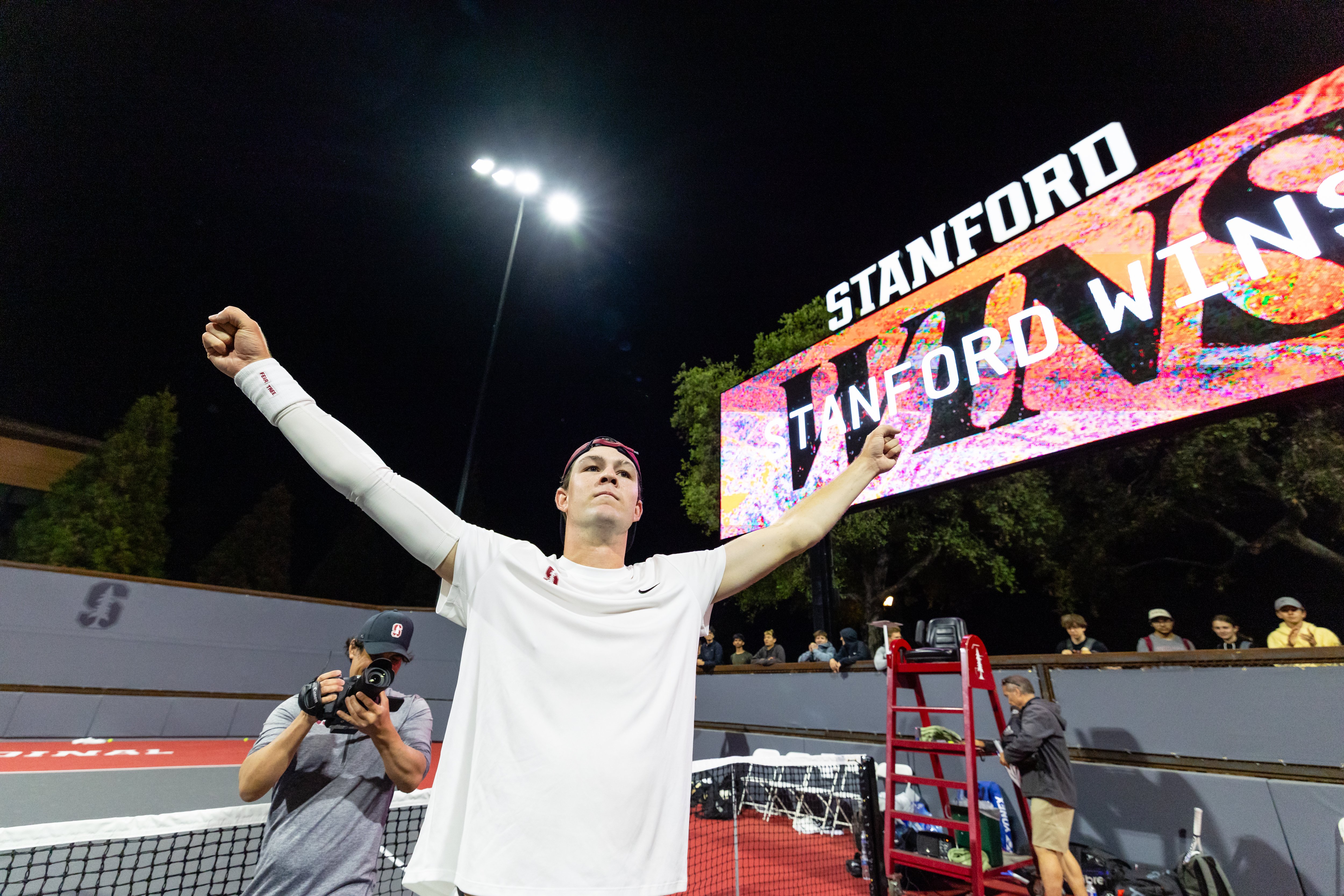 Stanford had initially trailed 3-0 in the match, dropping the tightly contested doubles point and suffering quick losses on courts one and three. However, consecutive wins from sophomore Alex Razeghi, graduate student Alex Chang and junior Hudson Rivera swung the momentum back to the Cardinal and set the stage for Leach.