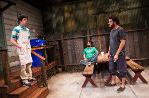 When the play opens, it’s a calm, sunny summer afternoon. Jasper (Peter O’Connor) and KJ (Haynes Thigpen) are relaxing on the picnic bench outside. We will eventually learn that they aren’t in their own backyard, but actually trespassing on a restaurant. They aren’t looking at or talking to one another, but it’s perfectly relaxed and natural. It’s also silent for minutes, allowing us to adapt to the pace and the rhythm of the play. They eventually start to speak, though not really about anything, before they are ultimately interrupted by Evan (Brian Miskell), the sixteen-year-old who has just started working at the restaurant where they are.
