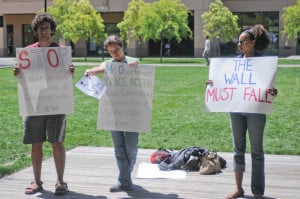 Outside the auditorium, a handful of students protested Oberhelman’s presence on campus and Caterpillar’s business practices in the Middle East.
