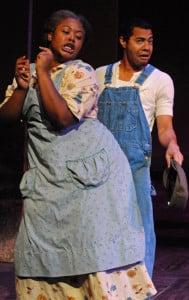 “Purple” is not for the faint of heart, containing demeaning images of women, domestic abuse, discussions of rape and blatant racism. But in the spots when some of the plot-knowledgeable audience members were clearly nervous about others’ reactions—at one tense point when a knife is pulled on another character, a woman sitting behind me actually muttered, “I hope no one walks out after this scene”—the cast handled the roles beautifully.