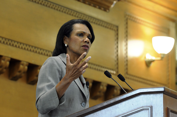 Former Secretary of State Condoleezza Rice spoke Monday morning about the multifaceted nature of Chinese-U.S. relations. Rice emphasized that economic, military and diplomatic relations between the two states hinge upon domestic political reform in China at this critical juncture of possible leadership transitions in both countries.