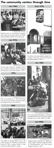 Because of the community centers’ unique place in campus debates over diversity during the last 40 years, the centers at Stanford have developed in a way that few centers at other universities have. Even compared to its peer institutions, Stanford’s community centers are unusually large and well supported.
