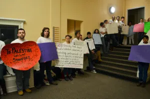 Though the Senate announced last week that they were done discussing divestment, more than 100 students packed into the Senate room to further debate the issue, spilling into the hallway and carrying signs with slogans such as “Free Palestine” and “Vote for Justice.”