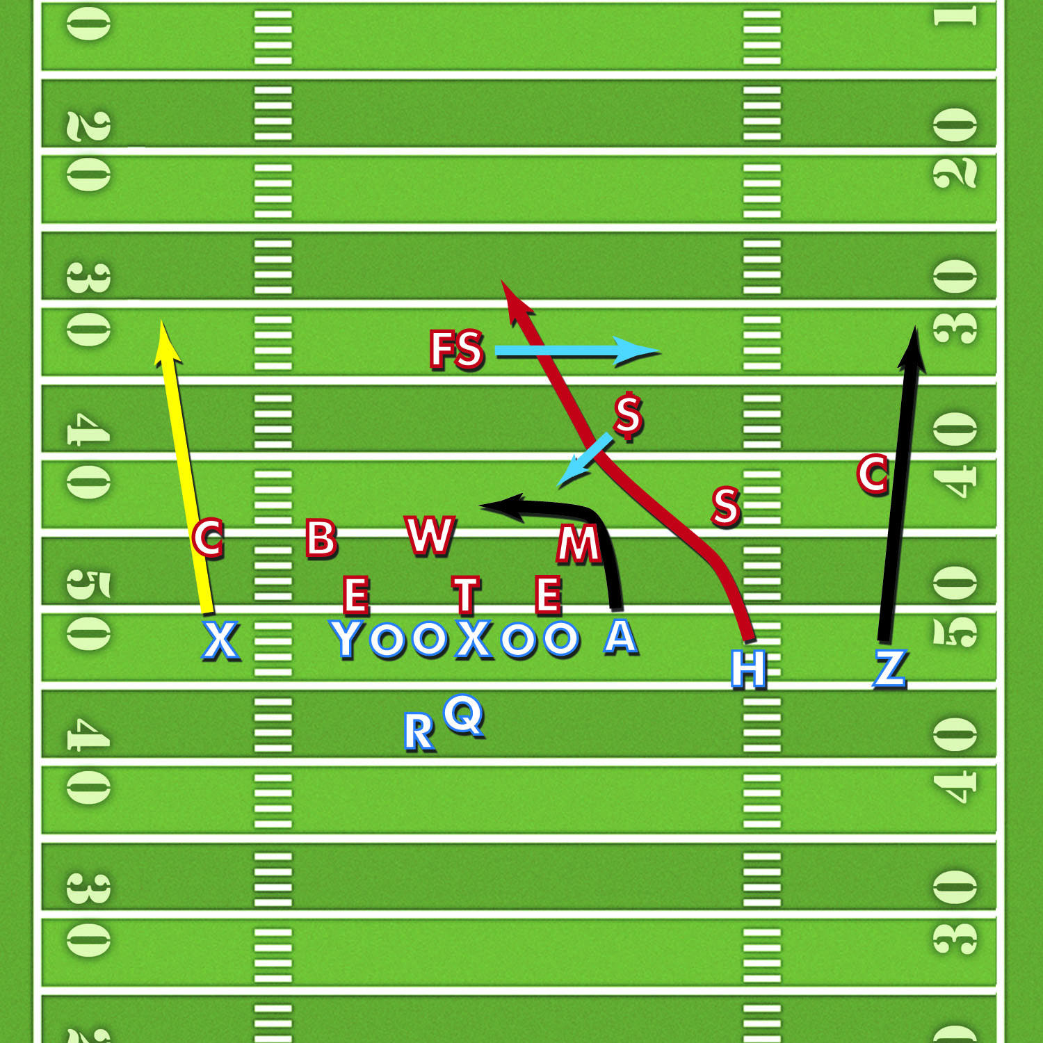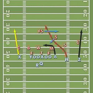 Here the spread helped pave the way to victory: By spreading the receivers and stretching the field, Stanford opened up space to run. Stanford’s three deep vertical routes pinned Washington State’s cornerbacks to the sidelines, clearing out the middle of the field to let Cajuste find the open space. With three receivers to the right of the quarterback, Washington State’s remaining safety (F/S) overcommitted to the right. Cajuste easily outpaced his man, drifted left and found daylight in the middle of the field, and his 57-yard touchdown catch gave Stanford a lead it would hold for the rest of the game.