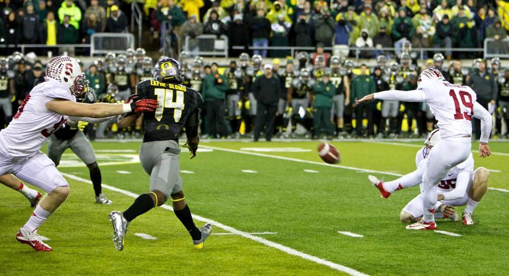 But 10 months later, Williamson had another massive opportunity: a 37-yard field goal in overtime at Oregon to hand the Ducks their first loss and propel the Cardinal to a potential Rose Bowl berth. This time, the kick was true.