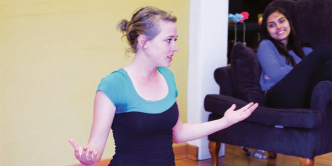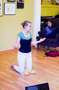 Jessica Smith ’15, a theater newcomer, became involved in the production through the encouragement of her teammates from women’s rugby. She explained that her monologue is informed by her own life and the experiences of her friends.