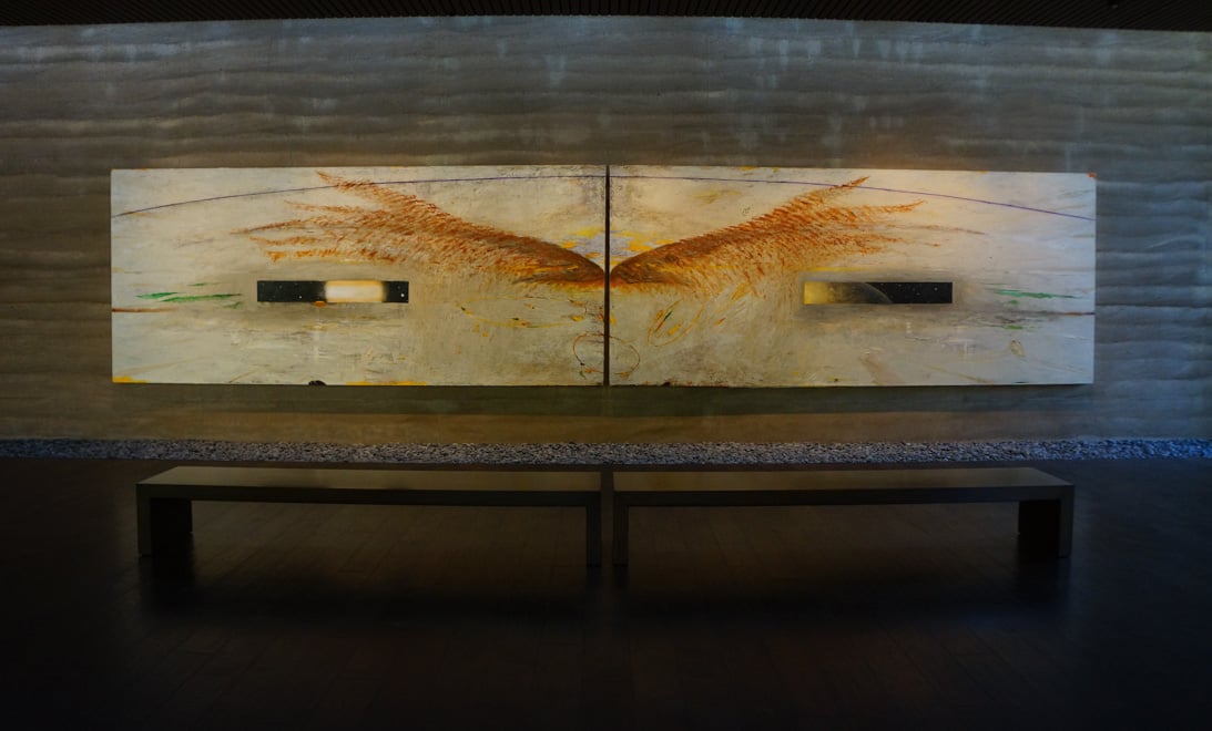 The “rammed earth” walls and thick glass windows will block cellular and Internet signals and keep the building technology-free. The collection of Nathan Oliveira paintings adorning the walls are intended to evoke a sense of calm and contemplation. Students are also expected to remove their shoes before entering the building.