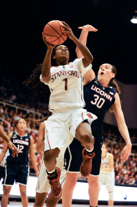 Stanford played to its strengths against the larger and stronger Husky lineup and it ultimately paid off in the end. The Card were aggressive in attacking the basket and drawing the fouls, penetrating the stalwart Connecticut defense and also finding open shooters on the perimeter.