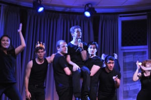 But “Did We Offend You” is first and foremost a theatrical production, and in this respect, At the Fountain Theatricals succeeds tremendously. Sass and attitude are perfectly intonated within the appropriate songs, and the supporting band often added another layer of comedic effect to the performance, with brassy cues to punctuate punch lines, most notably during “The Internet Is For Porn.” Bright and campy lighting during “If You Were Gay,” and the dark and angsty atmosphere in “Rockstar” complemented the songs, allowing the focus to be placed on the obvious talent on stage. It’s a tight production, with acts rotating quickly throughout the show.