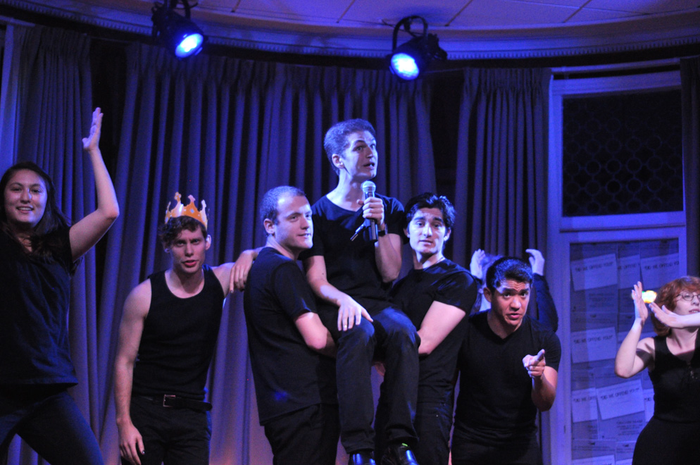 But, the overall effect could be described as perfectly vanilla. For example, the classic cartoonish voices in “Corrupt Bargain” and jazz fingers in “La Vie Boheme” are staples of musical theater. The cabaret seems to err on the side of politically correct rather than thought-provoking. It’s hard not to laugh when Graham Roth takes to the stage with his Hitler mustache and faux accent to belt out “Springtime for Hitler and Germany!” The ridiculously over-the-top ode to Hitler makes it clear that this song is not to be taken seriously, and laughter, rather than philosophical debate, seems to be the more appropriate response for much of the cabaret.