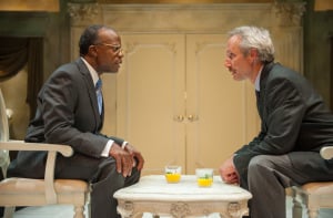 The play allows us to ponder these questions while throwing us into the relationship between Mugabe and Dr. Peric. Peric struggles to establish his method and ground rules while trying to listen to his patient and help him get better. Set designer Nina Ball creates a beautifully regal — and somehow simultaneously foreboding — government chamber in the Mugabe home as the backdrop for their interactions. It’s a constant compromise, a dance in which Peric pursues some questions, involving Grace Mugabe (a regal Leontyne Mbele-Mbong) and the butler Gabriel (Adrian Roberts), and lets others sit.