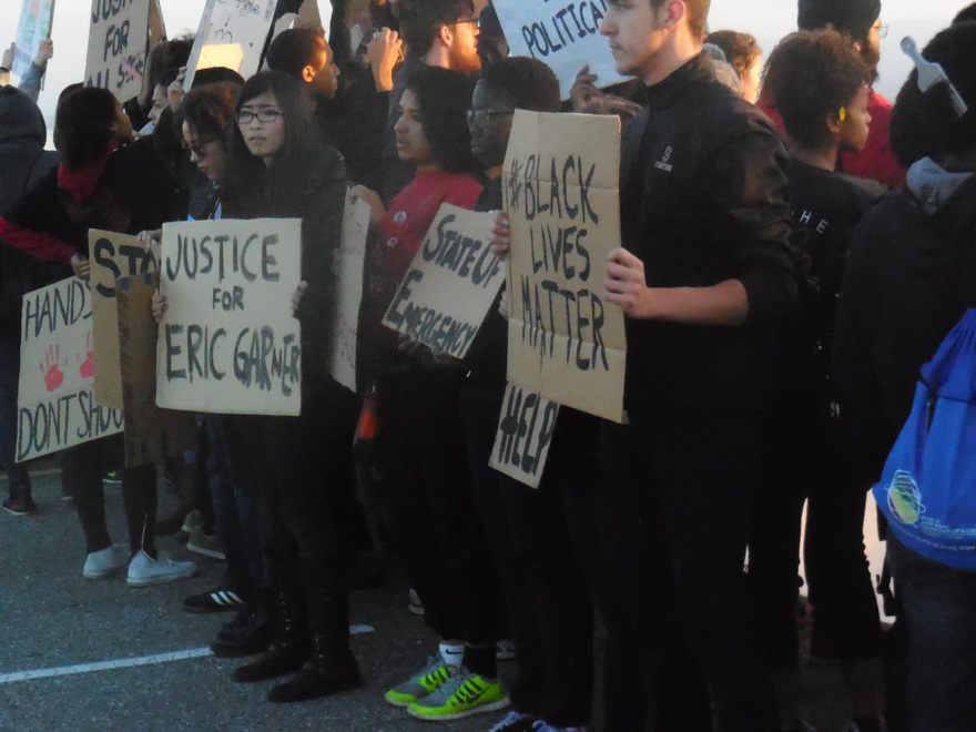 During the demonstration, participants engaged in nonviolent civil disobedience and attempted to block the westbound side of the bridge for 28 minutes to symbolize the fact that every 28 hours, a black person is killed by a police officer or vigilante, stated a press release from Silicon Shut Down, a collective of students that “organize in West Palo Alto, East Palo Alto and the Silicon Valley against state-sanctioned violence (police brutality) and other forms of systemic oppression,” according to their website.