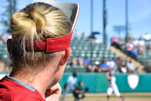 If Lang said it was rally cap time, it was rally cap time. As Cal Poly’s Sierra Hyland threw her last warm up pitch of the inning everyone in the dugout started to un-velcro their visors. In contrast to the traditional way of wearing visors, rally caps call for upside down visors with the bill pointed towards the sky. Lang led the pack as everyone, including our athletic trainers followed suit. It gave the dugout life; the energy that we had so heartedly been missing earlier in the game.