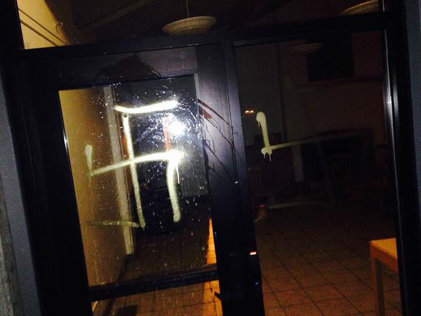 The graffiti was discovered late on Saturday night by members of the fraternity as they were returning to the building.