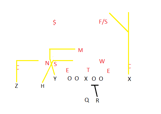 “Levels” might be the most popular passing play in the NFL, and in a NFL-style offense like Stanford’s, you’re going to see this play a lot in crunch time. Memorize this play. You will make a lot of friends at cocktail parties with this play.