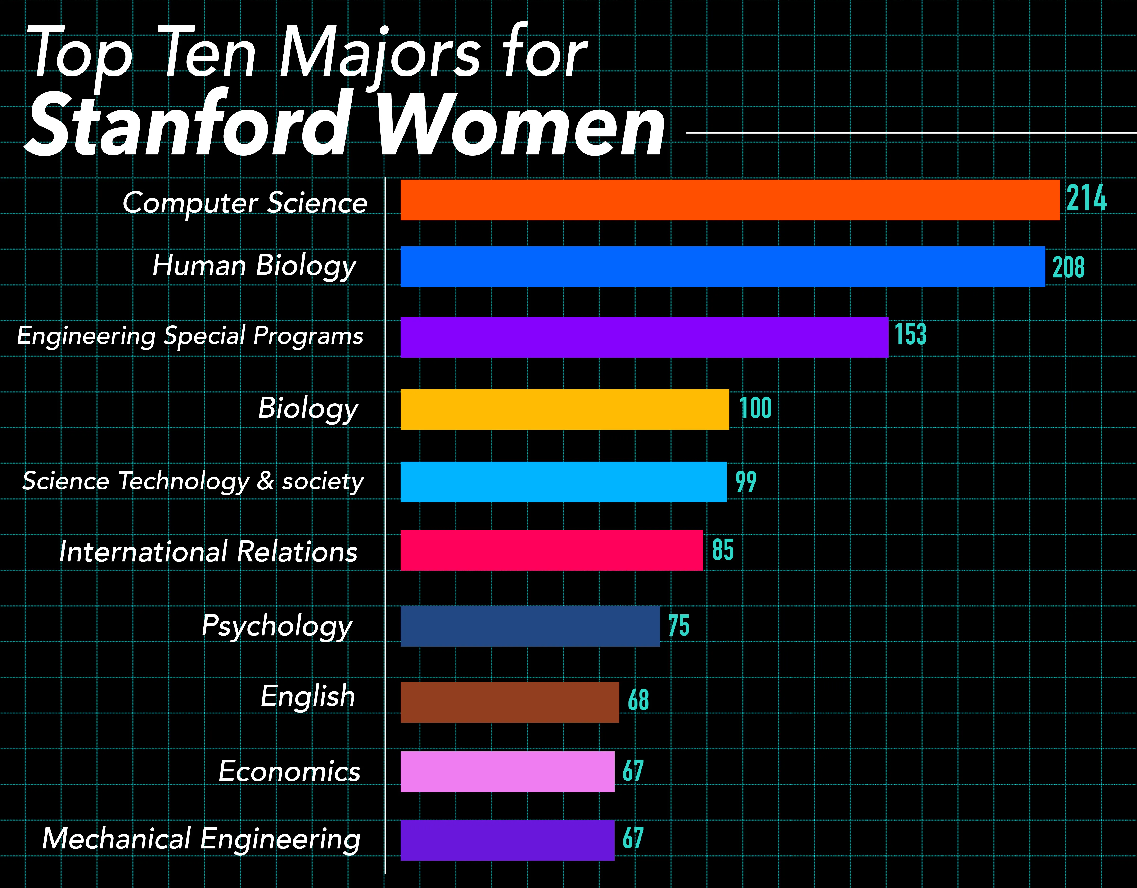 According to data on declarations, 214 women are majoring in computer science, a fact that solidifies the recent growth of interest in the department. The previously most popular major among women, human biology, closely trails with 208 declarations.