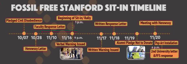 The night before the rally, organized by Fossil Free Stanford (FFS), the participants had received another warning from the University, this time with a more clear timeline for punishment as well as an extended threat to suspend investment requests currently in the process of being reviewed.