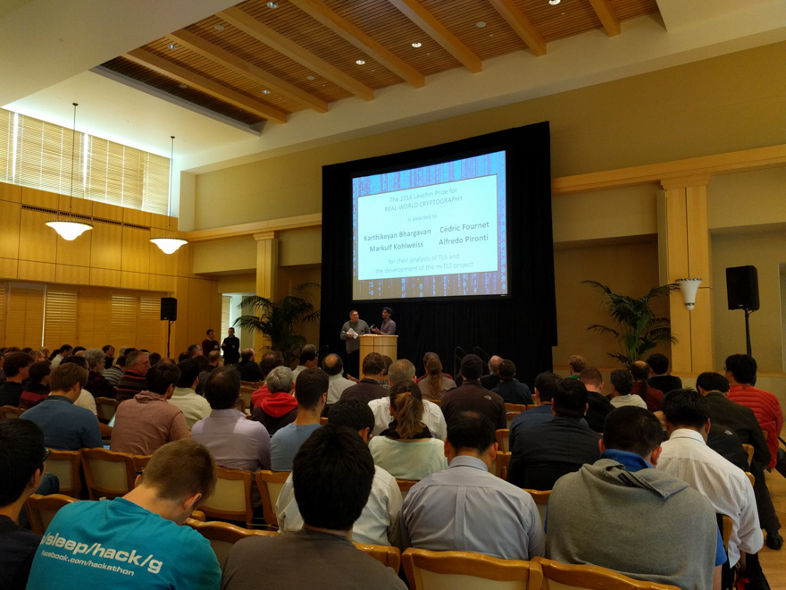 The inaugural Levchin Prize for Real World Cryptography was awarded Wednesday at the Real World Cryptography Conference (RWCC), held annually at Stanford. Phillip Rogaway, professor of computer science at UC Davis, as well as the international miTLS research team, each received $10,000 for their work on cryptography.