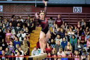Sophomore Elizabeth Price was one of the leading forces on the team this weekend, winning the all-around with a 39.600 score, her season best. Price also finished in the top 10 for every event. She won bars with an outstanding 9.950, got a third place on beam with a 9.900, fourth place on vault with a 9.875 and sixth on floor with a 9.875.