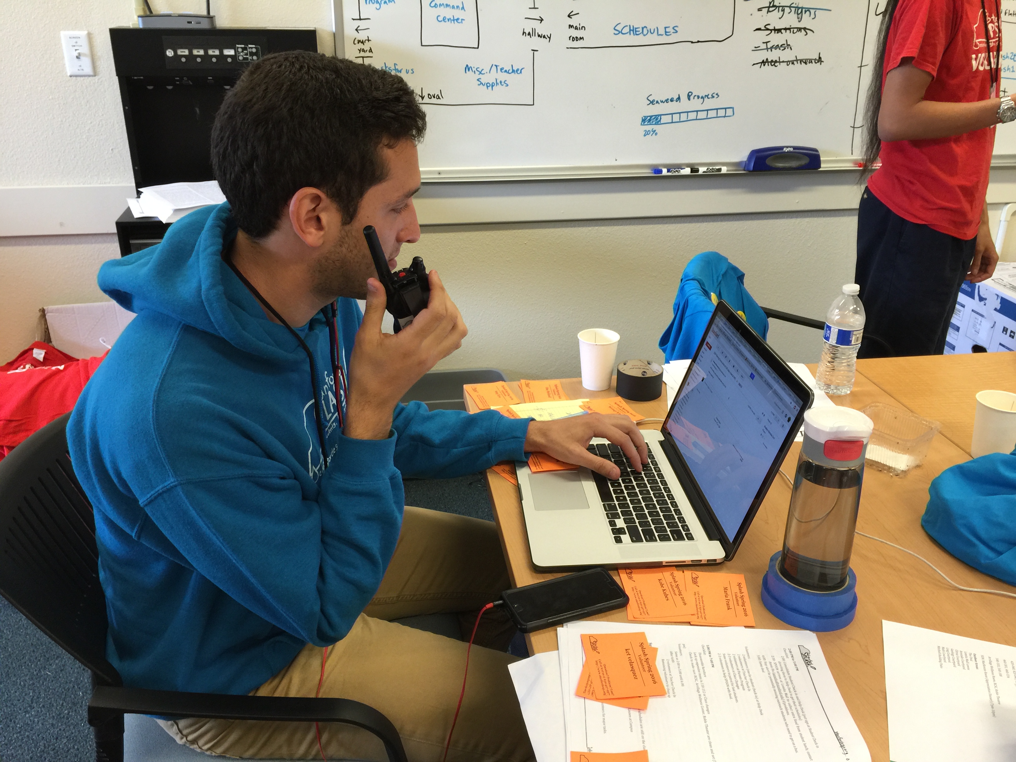 Still, I’m impressed by the scope of the program: 60 to 70 Stanford volunteers, 300 teachers, 25 administrative members and two advisors, Ankita and Rosy, from SAL and Haas. There are even a few “exchange” students from the leadership teams of other Splash programs at UNC, Pomona, Yale, Berkeley and other schools, here to learn about how Stanford Splash is run.