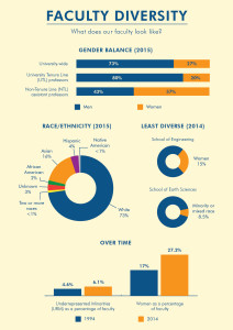Lack of racial diversity is not the only problem. Gender diversity among the faculty has improved only marginally over the past decade. According to the report, from 2004 to 2014 the University’s proportion of female faculty increased by four percentage points.