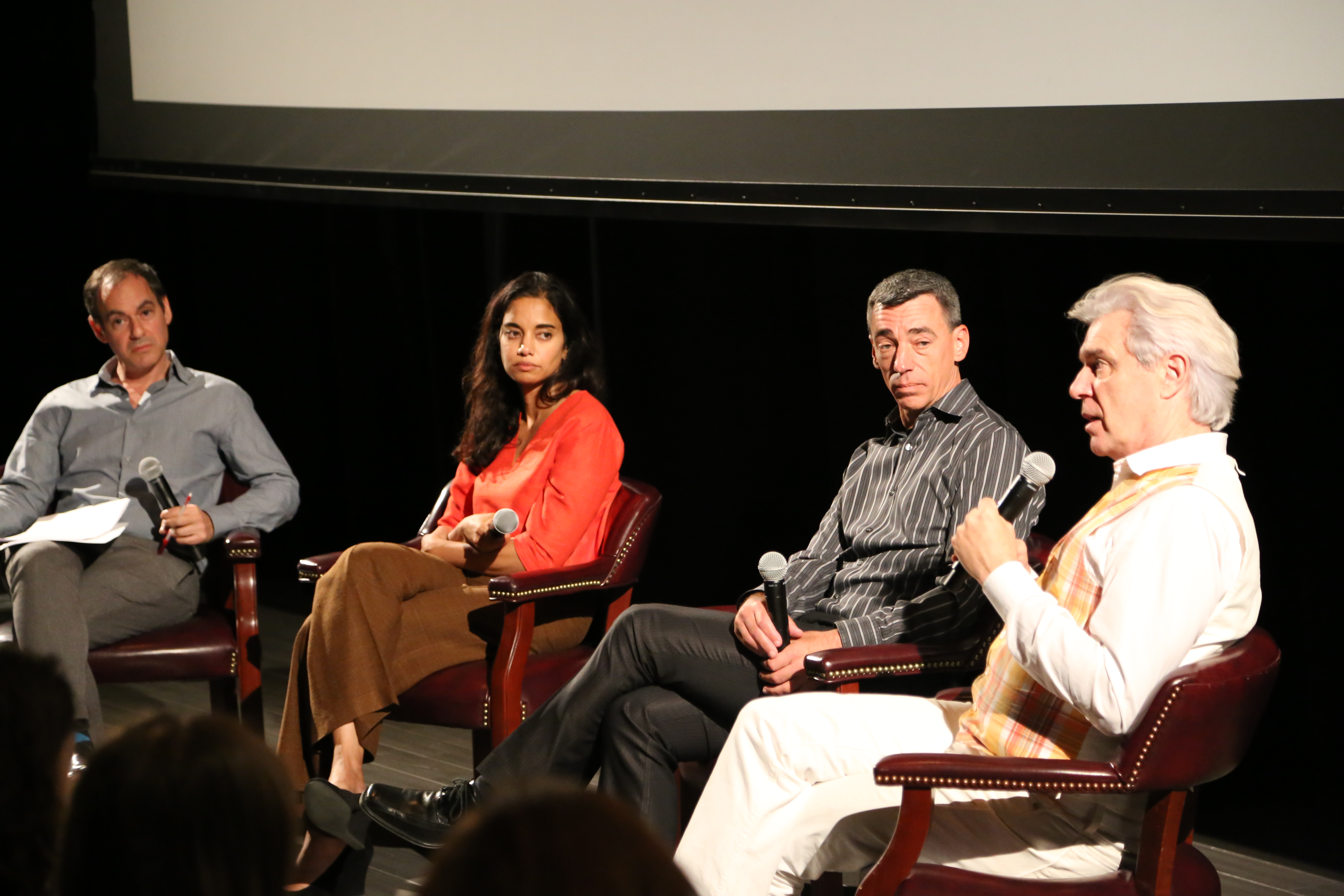 David Byrne and Mala Gaonkar want you to learn without knowing that you’re learning. If there’s one thing that they made clear over the course of their 1.5-hour discussion on Wednesday at the McMurtry Building with Stanford professors Anthony Wagner (psychology and neuroscience) and Charles Kronengold (music), it was that principle of subtle teaching. The discussion of their new piece of experiential theater, “The Institute Presents: NEUROSOCIETY,” was animated by that inclination, made most overt by Byrne’s declaration that helping audiences learn about themselves through the show was a “strong desire, but a secret desire.”