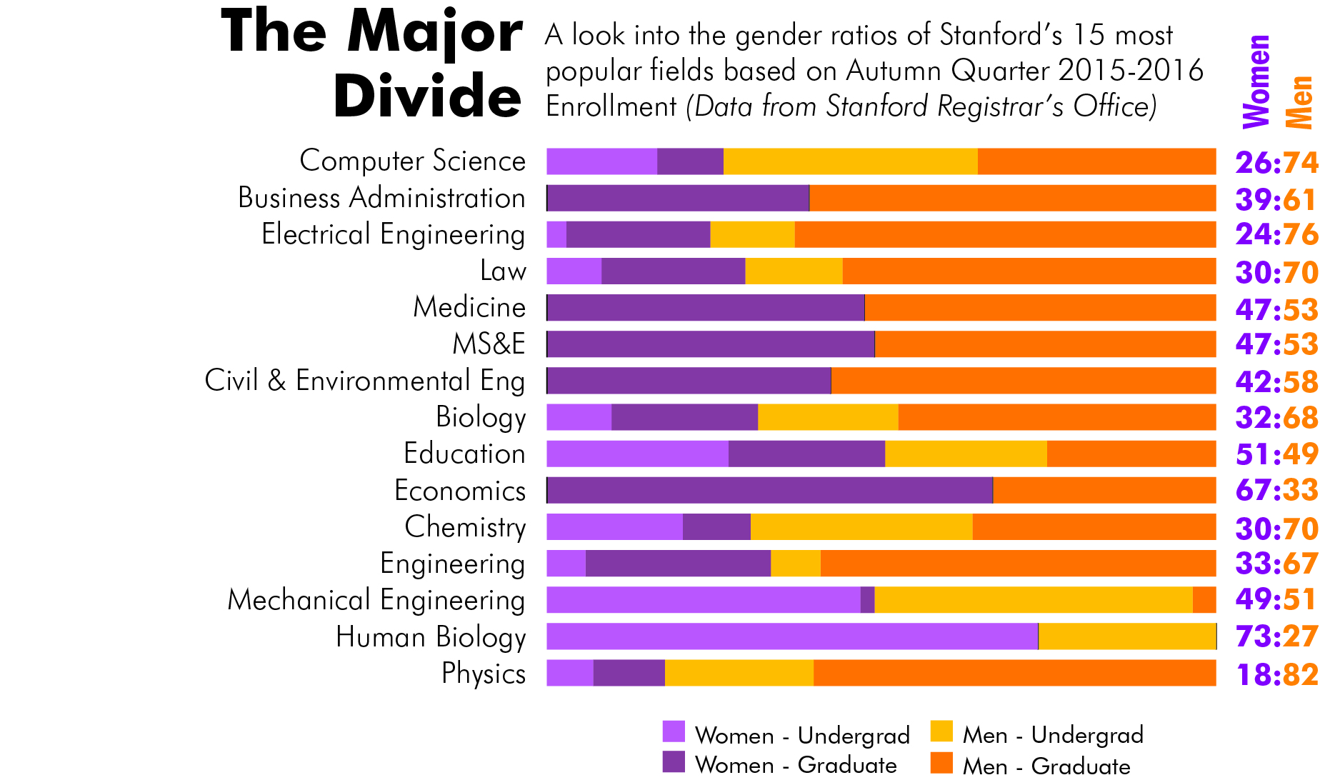 Graphic: Gender ratio in select Stanford majors 2015-2016 By Sunny Li Nov. 8, 2016, 8:31 p.m. Print Article