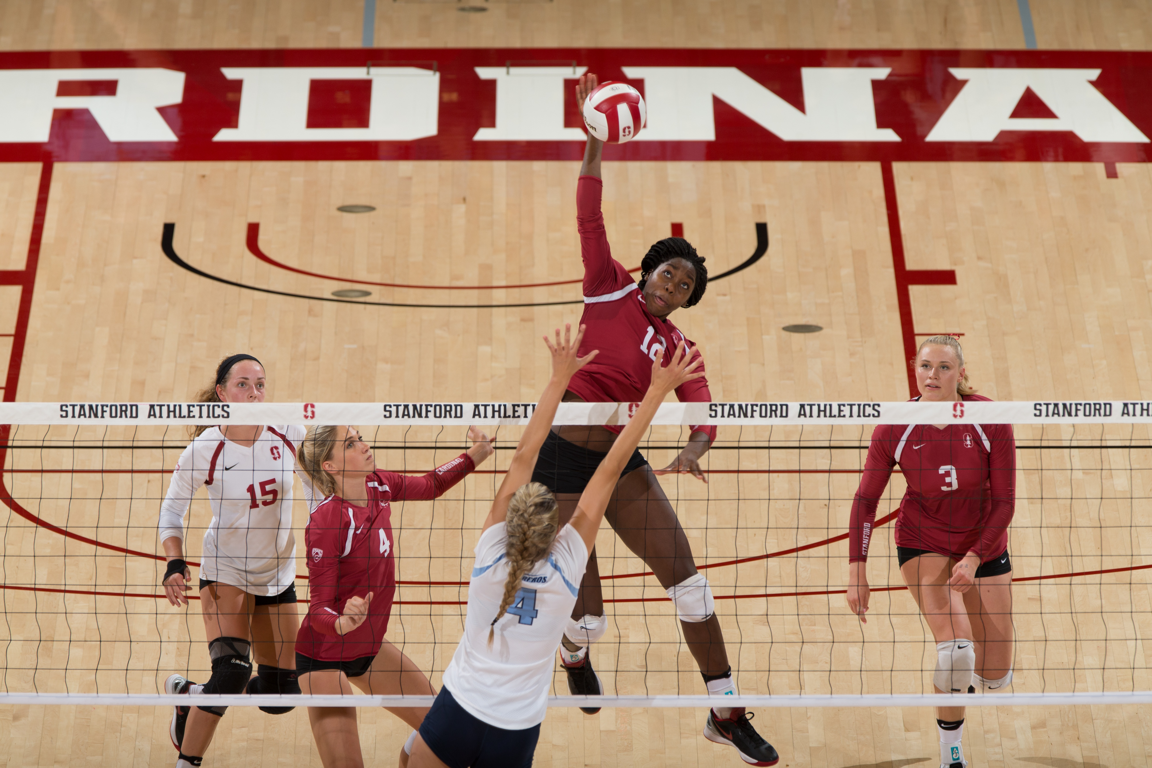 The teams started off neck-and-neck, alternating seven consecutive points before Stanford took the first set in extra points.