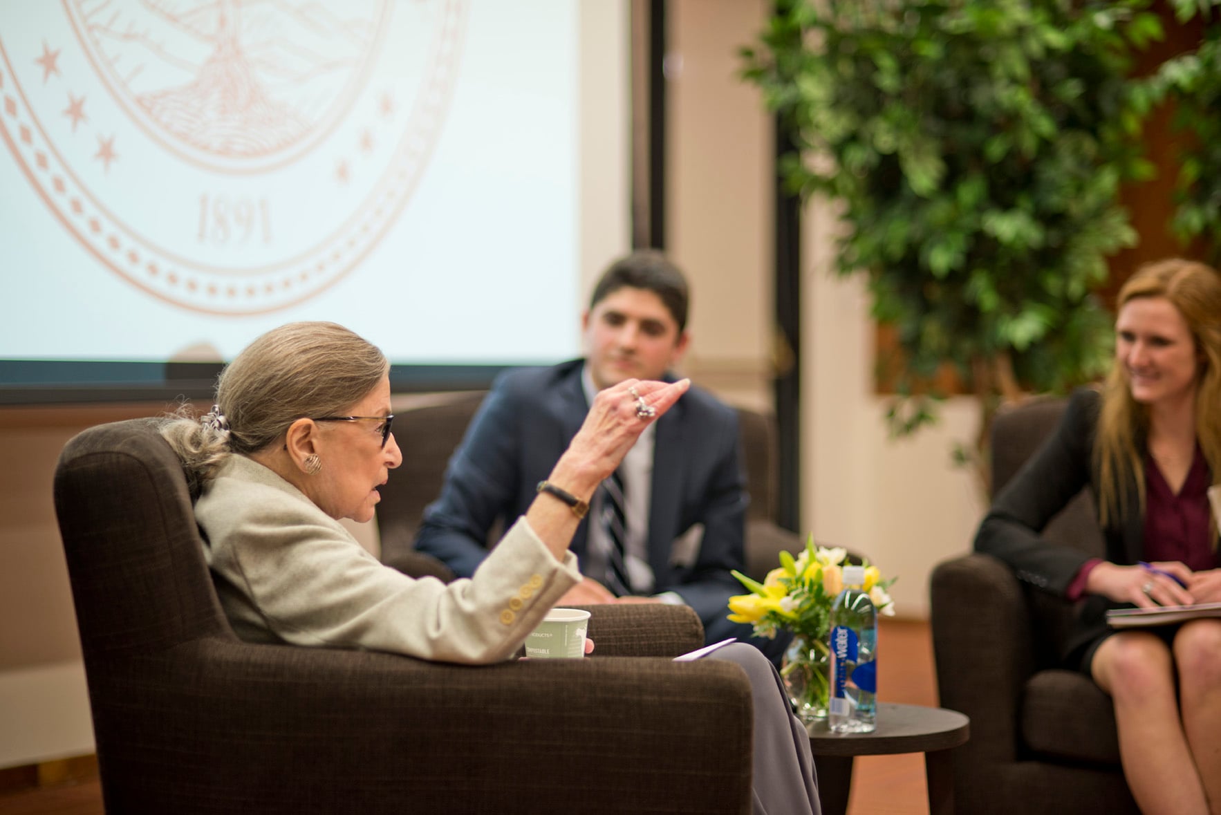 Ginsburg also emphasized the collegiality among Supreme Court justices that is founded on their “reverence for the institution [they] serve,” despite differences in their views and approaches to Constitutional text. She specifically alluded to her friendship with the late Associate Justice Antonin Scalia, whose textualist and conservative approach stood in contrast with her progressive views.