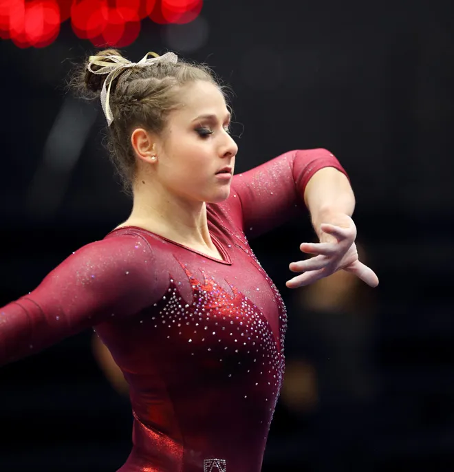The first event of the day for the Cardinal was the bars, where the team barely scraped by a win, bettering the Sun Devils with a 49.075-48.950 final score. Tying for third, senior Danielle McNair shone once again with a score of 9.825. Junior standout Elizabeth Price returned to the stage after a brief break due to injury and placed first with an almost-perfect score (9.950). These efforts were backed by outstanding performances by senior Nicolette McNair (9.775) and sophomore Dare Maxwell (9.775), allowing the team to take a definitive lead in the competition.
