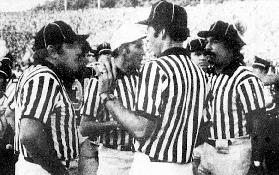 Berns: This was pre-Photoshop, so we had the photo managing editor doctor a photo of the ref calling the play dead. We had a state-of-the-art computer system at The Daily where we could change the type space and things like that, and we had copies of the Berkeley paper so we made it look exactly like the Daily Cal paper down to everything. In really really small type we wrote that it was a Stanford Daily prank, but it was in such small type that you could barely read it.