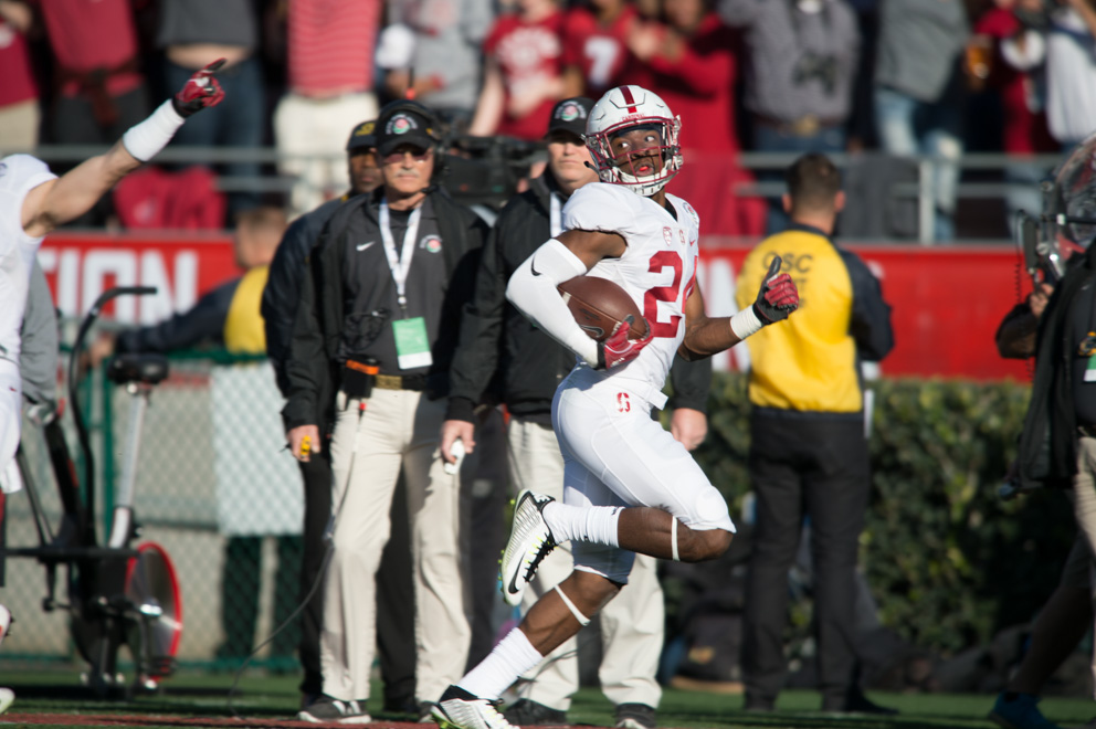 He also had a 66-yard interception return for a touchdown in the Rose Bowl against Iowa, which put Stanford up by three scores. His freshman year was a sign of things to come as Meeks has had a productive collegiate career for the Cardinal.