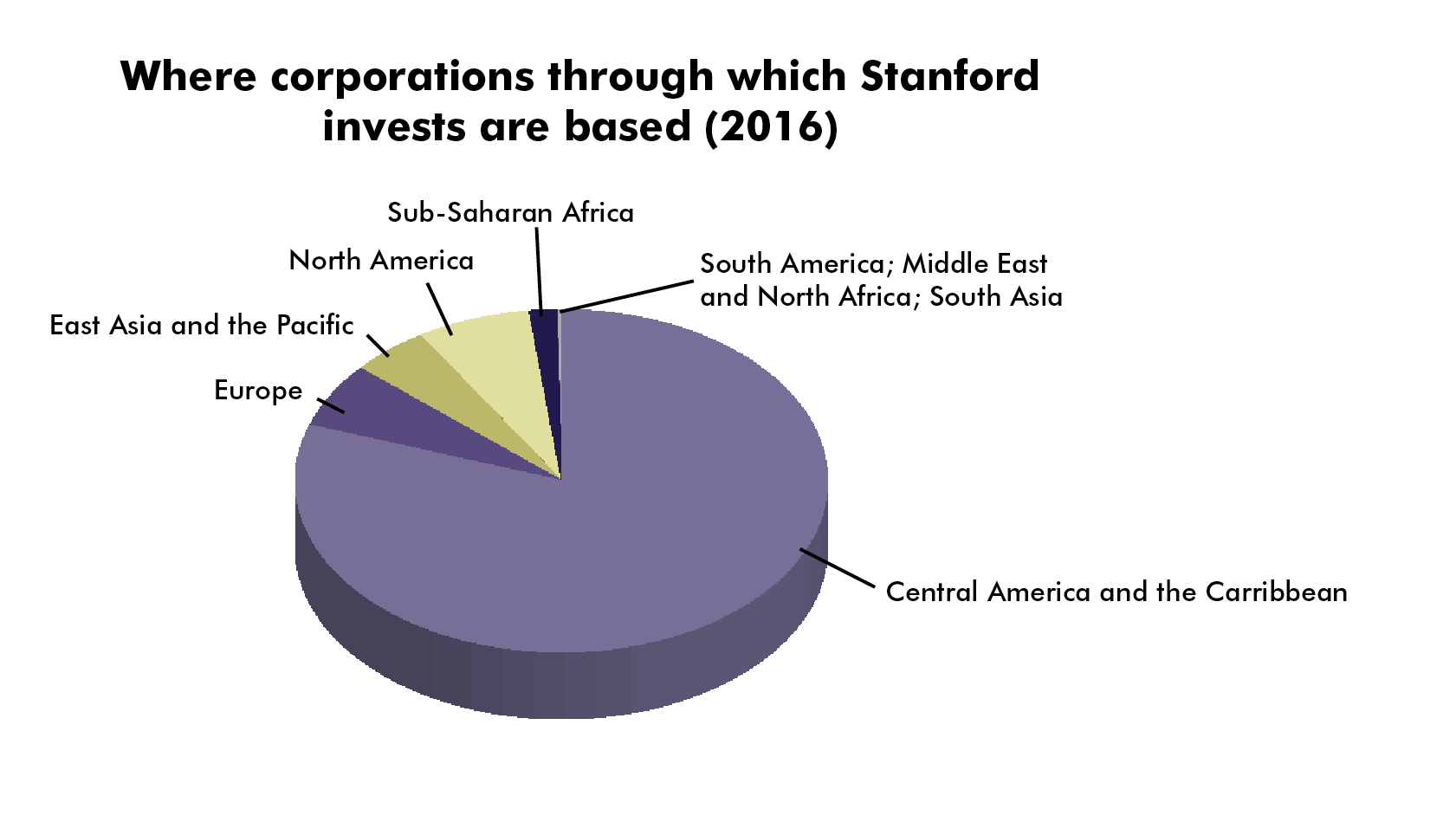 In 2015, Stanford’s Board of Trustees, which manages the University’s investments and other assets, reported $9,653,379,283 worth of investment through corporations based in the Central America and the Caribbean.