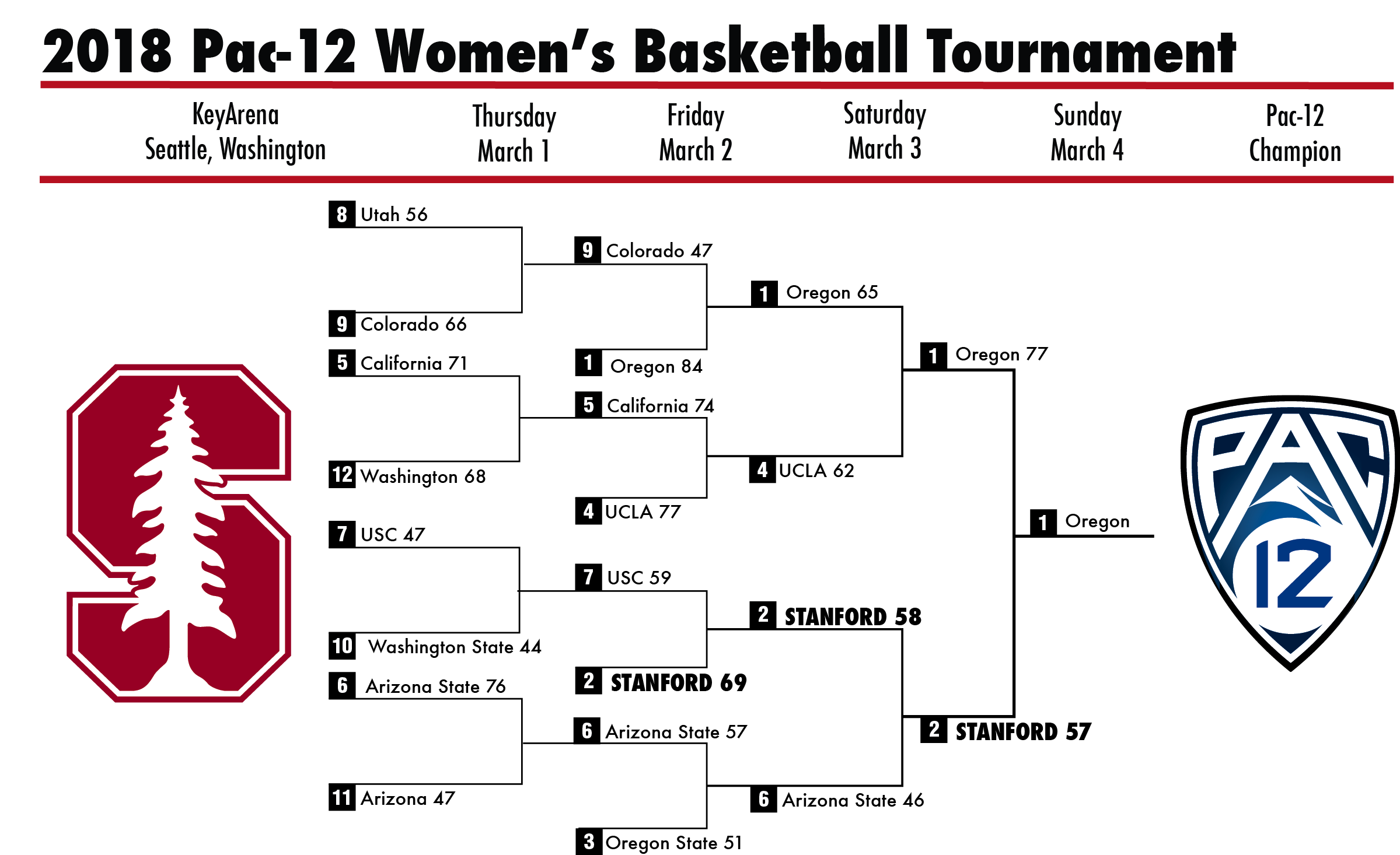 Sophomore Sabrina Ionescu went off for Oregon and put the team on her back, as she finished with a career-high 36 points on 14-24 shooting. The tournament’s most outstanding player did it all for the Ducks on offense and on defense, as she also pressured the Stanford guards all night long forcing Stanford turnovers. Ionescu’s 36 points breaks Stanford’s Candice Wiggins record for scoring in a Pac-12 championship game.