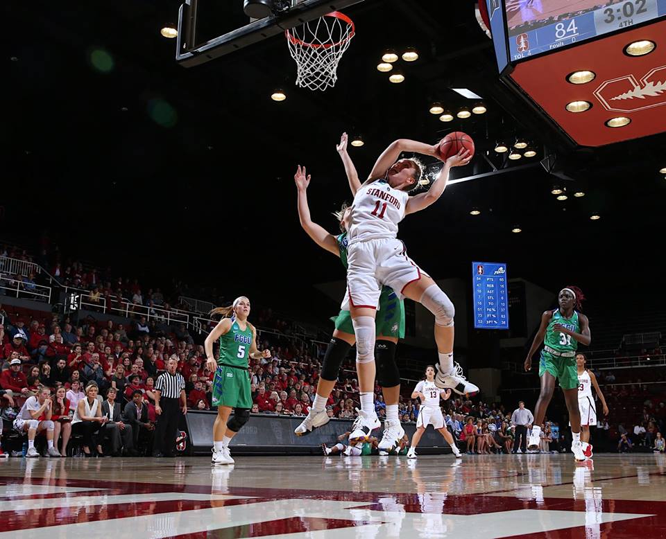 With no FGCU player standing taller than 5-foot-11, Stanford made good use of its size advantage and scored 40 points in the paint. Smith and senior Kaylee Johnson were dominant inside as they both brought down 12 boards. Overall, the Cardinal outrebounded the Eagles 52 to 18, and grabbed 16 offensive rebounds that they converted to 19 second chance points.