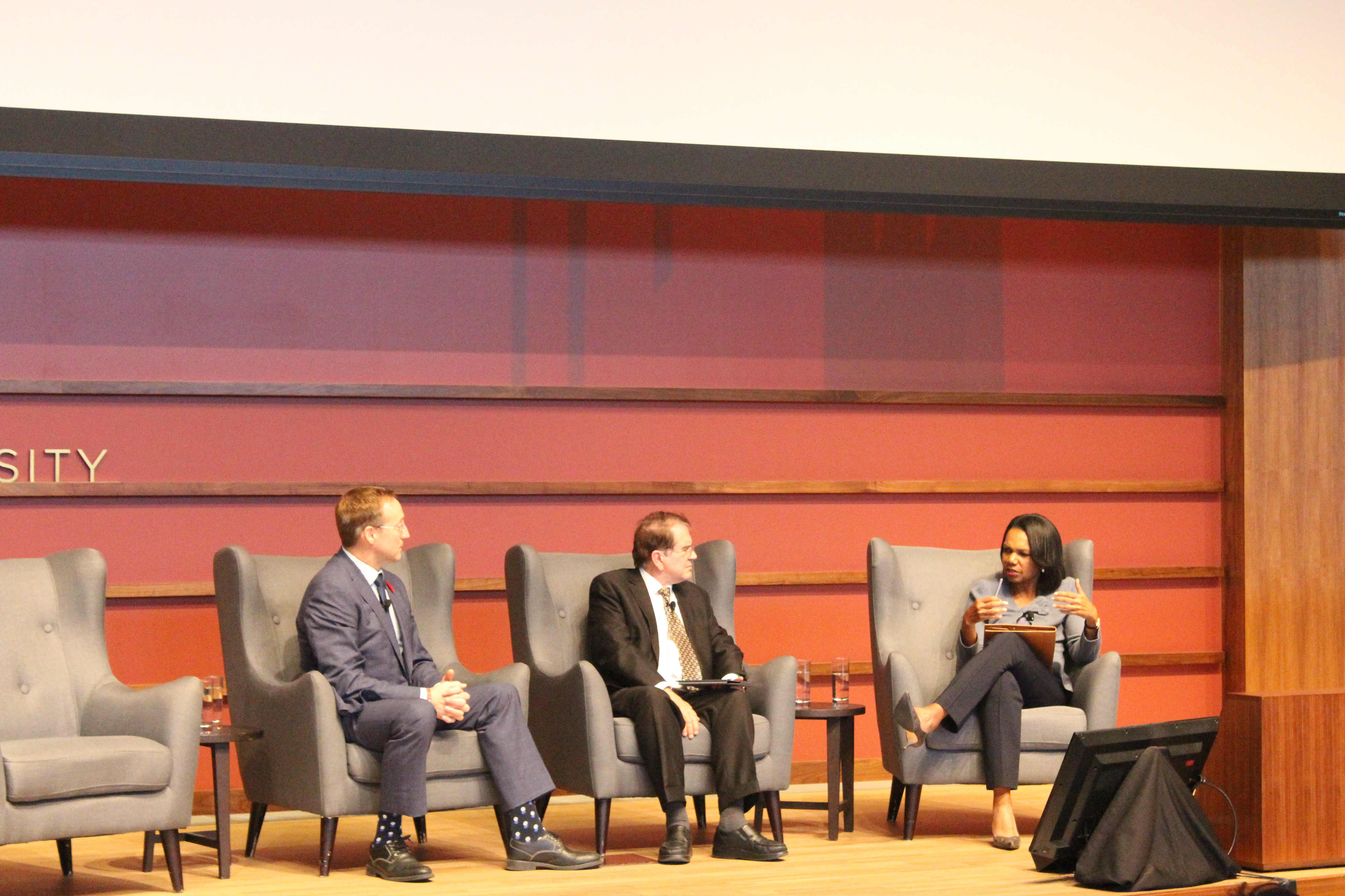 The theme of global interaction continued through the day, with panels chaired by notable Stanford faculty including former Secretary of State Condoleezza Rice, former Secretary of Energy Steven Chu and former Secretary of Defense William Perry.
