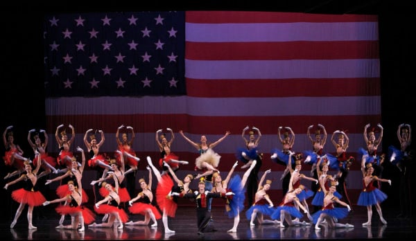 In some sense, “Stars and Stripes” captures Balanchine’s genius. It may not possess the rarefied resplendence or the stark simplicity of his other ballets, but nonetheless, he transfigures military exercises into graceful motion. The ROTC cadets appear in rigid geometric formations, but instead of marching, they execute pirouettes. Lady Liberty is no longer just a static figure. Instead, she expresses herself energetically and elegantly. Balanchine marries martial order and balletic finesse. Perhaps “Stars and Stripes” could be called kitschy or campy, but as Susan Sontag notes, the most effective camp involves “things being what they are not.” No ROTC drill is as refined as Balanchine’s choreography, and no ballet is as explicitly patriotic as “Stars and Stripes.” By forthrightly celebrating America, Balanchine makes us consider American symbols and his art form anew.