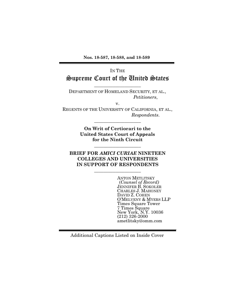 The amicus brief is the latest in U.S. universities’ fight against DACA’s survival two years into President Donald Trump’s order to phase out the program.